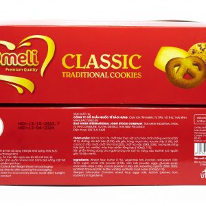 | Mô tả sản phẩm | Bánh quy Omeli Classic Traditional Cookies được phủ lên mình một màu vàng, vàng nhạt đến nâu đậm. Bánh có vị ngọt, thơm của mùi bơ, một vị ngọt đặc trưng hợp với khẩu vị của người Việt kết hợp cùng với đó là hương thơm đặc trưng của bánh quy. Khi cắn vào, bánh giòn xốp và tan trong miệng, không những ăn không ngấy mà còn lại rất kích thích vị giác. |